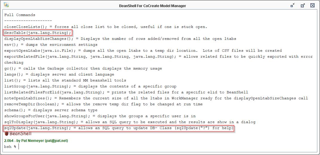 Der Model Manager brachte bis zur Version 18 die so genannte BeanShell mit. Hier konnte der Anwender Mittels vorgegebener Funktionen Java Methoden aufrufen, die die aktuelle Laufzeitumgebung des Model Manager beeinflussen. Da die BeanShell nicht mehr mit ausgeliefert wird, sind einige schöne Methoden nicht mehr erreichbar.